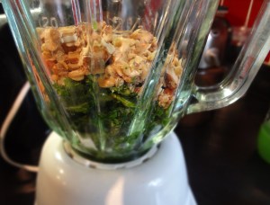 - Add walnuts, salt, pepper and nutmeg to the blender.