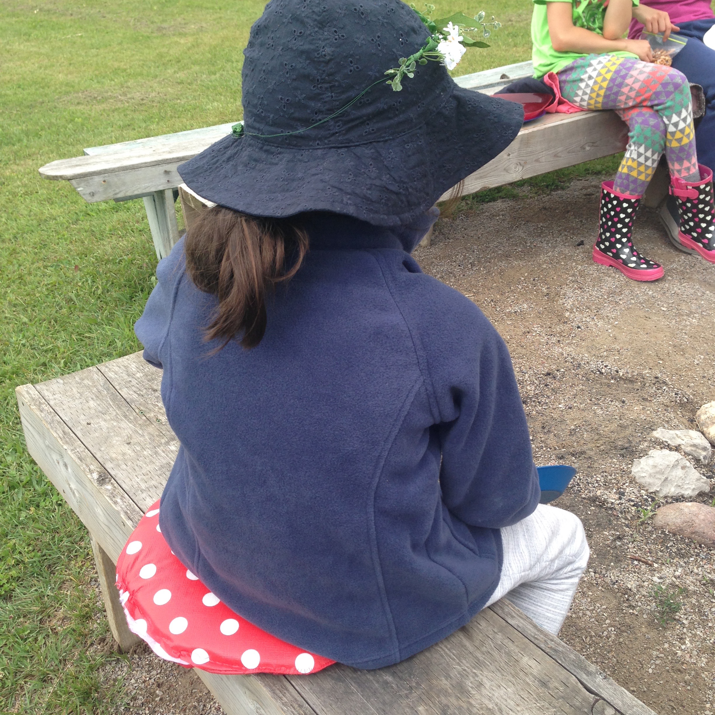 Our main craft was hand sewing toadstool sit upons. We cut plastic table cloths from Dollarama. We cut an eggshell foam mattress for the cushion. Not only are they cute, but lightweight, foldable and water resistant.