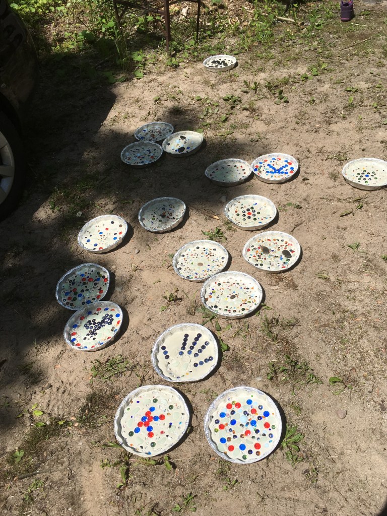 At the Newmarket Enrichment Day for Guiders in 2016, I made a mosaic patio stone. It was a fairly simple craft that can be enjoyed for many years to come. It is a bit messy though, so I thought making them outdoors at camp would be a good place to make them.