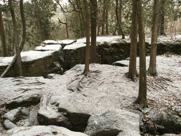 The light dusting of snow made for a beautiful mid-morning hike and a good test of our footwear.