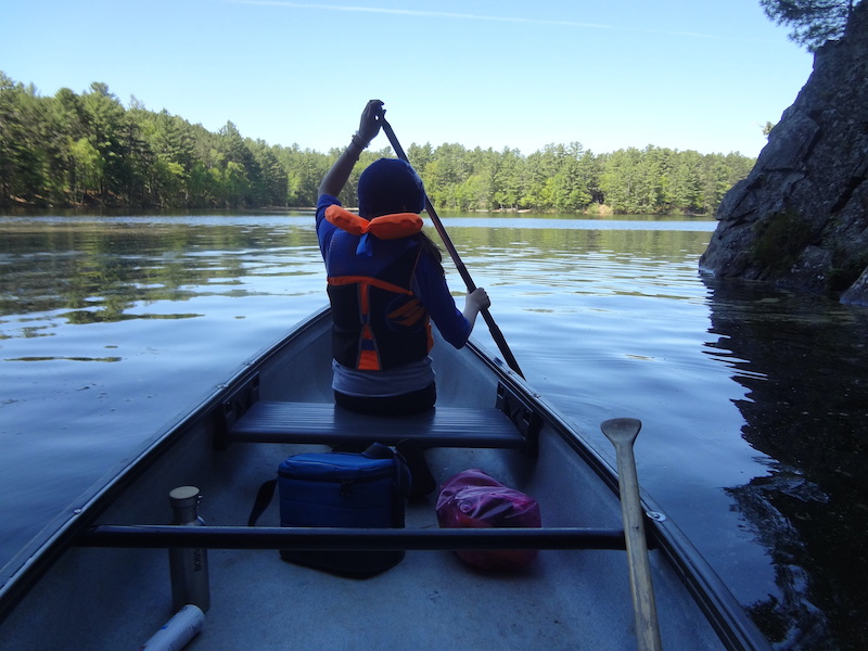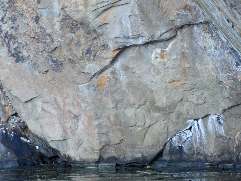 Our only option was to keep busy. We escaped to the water via a canoe we rented at from the Lagoon. The canoes were all those kind where the middle becomes convex over time, but no worries. The water was fairly still, with only a light breeze to keep the insects away. We paddled out to look at the pictographs. There were so many. The interpretive centre offered translations on each.
