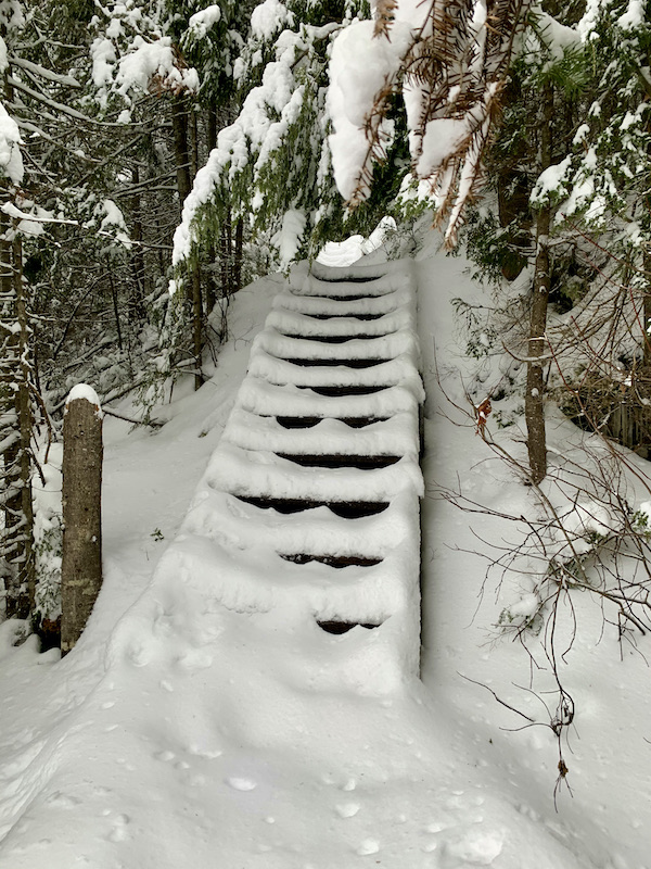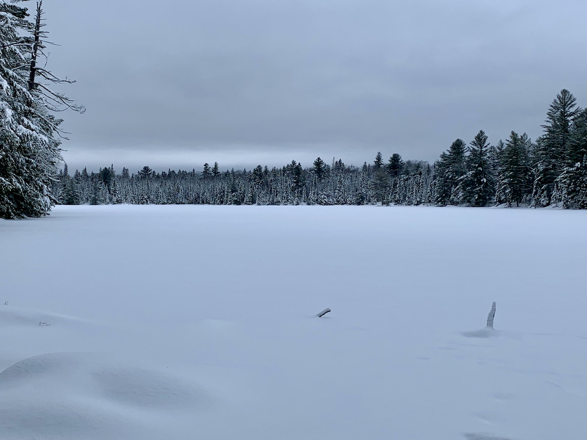 There had been signs of other people on this trail, but they seemed to stop close to the beginning after they were able to get a glimpse of the lake. The sounds along this trail along with the reported wolf sitings and approaching dusk had admittedly spooked us to the point where we were more concerned with our fasted route back to the car than stopping to enjoy the experience. None he less we did enjoy the trail blazing – nothing like being the first to traipse through fresh snow.
