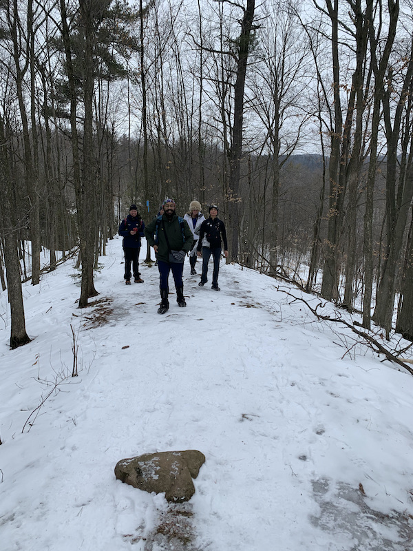 The trail was very picturesque with many ups and downs. One needed good legs and winter spikes. I got a pair from Costco one year and a pair of Kahtoola EXOspikes from New Balance at the end of 2020.