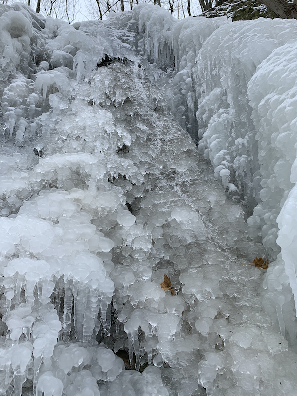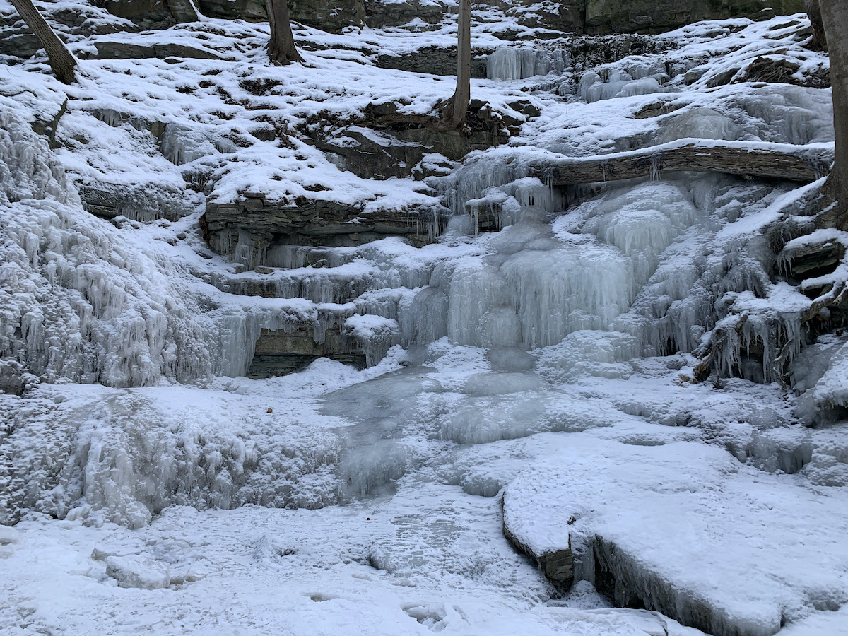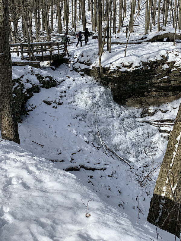 Our first goal was to find the Cantebury Falls Side Trail, which we did literally in a round about way. It was the smallest of the falls and nearly frozen solid, with sound of falling water deep beneath the icy crust. I believe this would be a pretty falls to see in the spring.