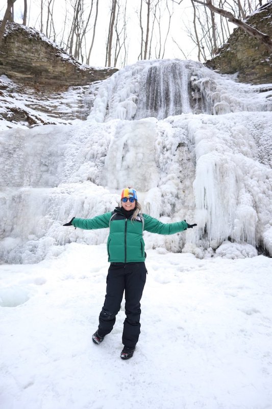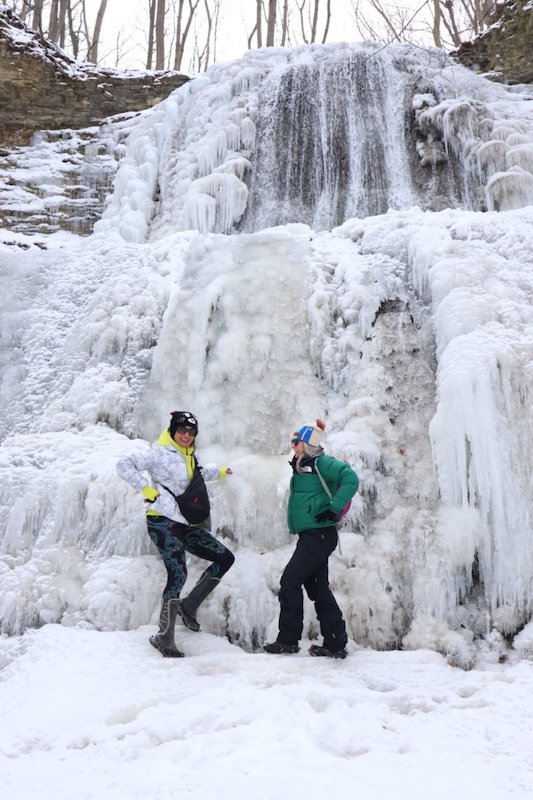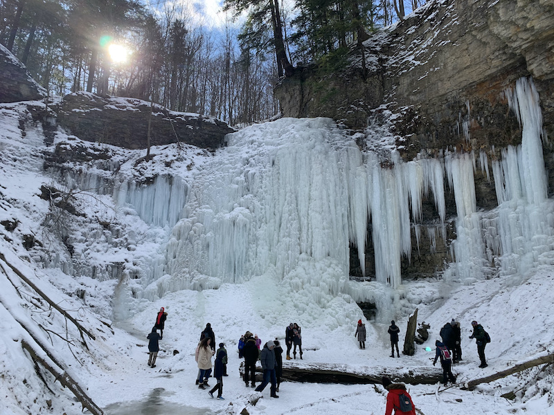 We then continued on to Sherman Falls. We opted to exit the Bruce Trail at the Lions Club Road parking lot and go by road due to time constraints. It was a pleasant walk none the less. Sherman Falls was very picturesque especially with it’s mix of walling water and frozen stalactites. (Will need to close the loop here).