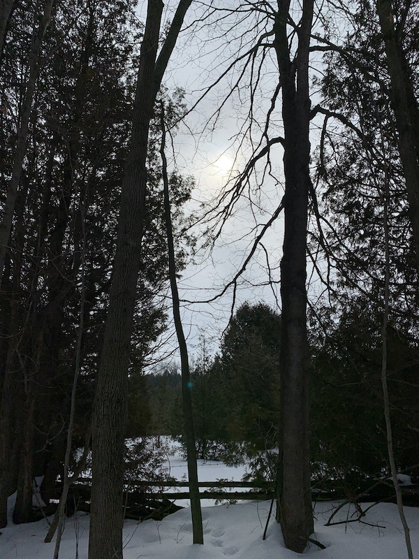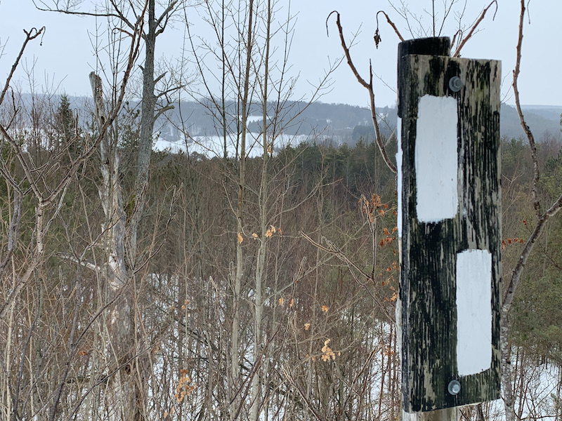 We parked at Hockley Road Side Trail and set out to hike from 60.1 km to 66.8, but this is what happened. We donned our Kahtoola ice grips and started-off with a very icy incline. This would not be a good trail to take without snow grips.