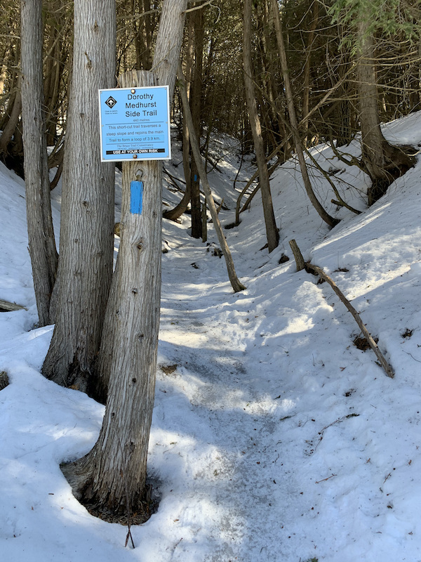 The Dorothy Medhurst Side Trail warned of a steep decline and the sign wasn’t kidding. Again we made it through and were happy that we weren’t returning on that path.
