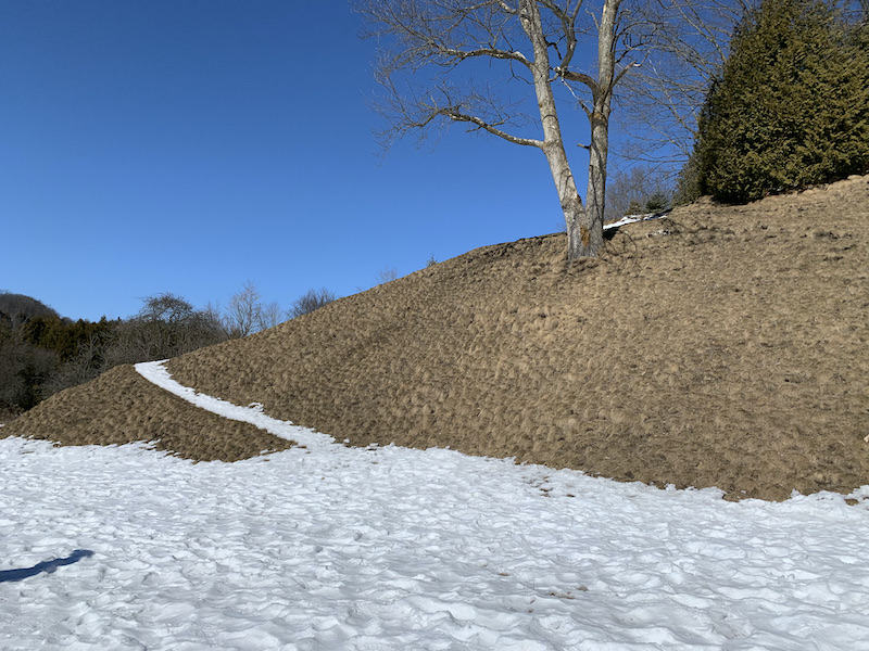 From this parking lot one must begin with Meadow Trail. We followed this to the Bruce Trail and turned left. This segment was fairly flat, with some icy sections. It was after this that the trail became very narrow, steep and icy. Our Kahtoola spikes and careful stepping kept us on trail.