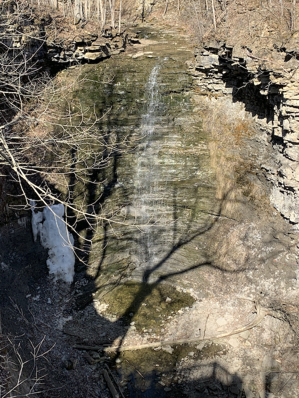 When we reached Pelham St. we took the road to Rockway Falls. Disclosure, though there is a path a no private property or trespassing sign someone told us it was private property.