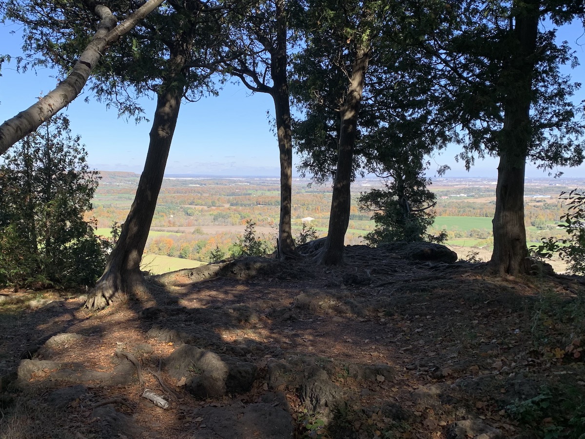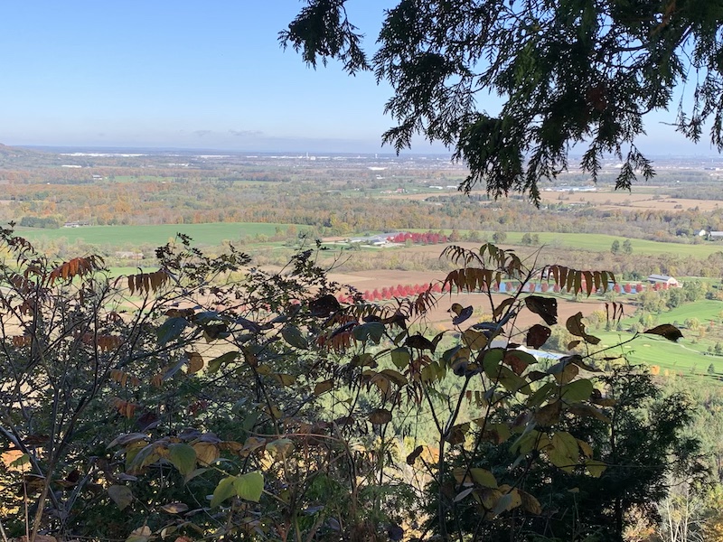 Once you enter the lower parking lot the once easy and nearly flat terrain climbs quickly leading through escarpment rock until you reach a small ladder which takes you to the top. Follow the trail for vistas of farm fields, Lake Ontario, Mississauga and Toronto. See other Mount Nemo hikes here, here and here.