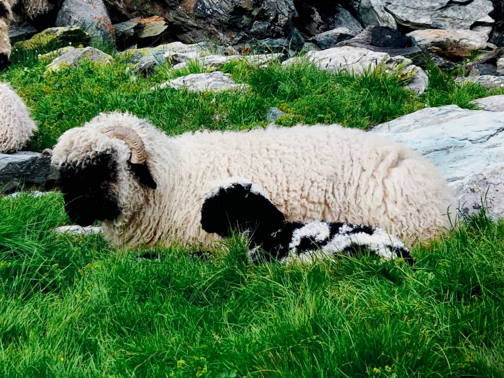 The terrain was pretty easy for the most part and what can I say the views were stunning. We came across the cutest mountain sheep that didn’t mind munching grass on the edge of sheer cliff that dropped off to the glacier below. All was going well until we were walking along a narrow dirty trail. The clouds became very dark and it felt like rain. If anyone knows about mountain rainstorms… you don’t want to find yourself on a fully exposed, narrow, muddy, slippery trail in a torrential downpour.