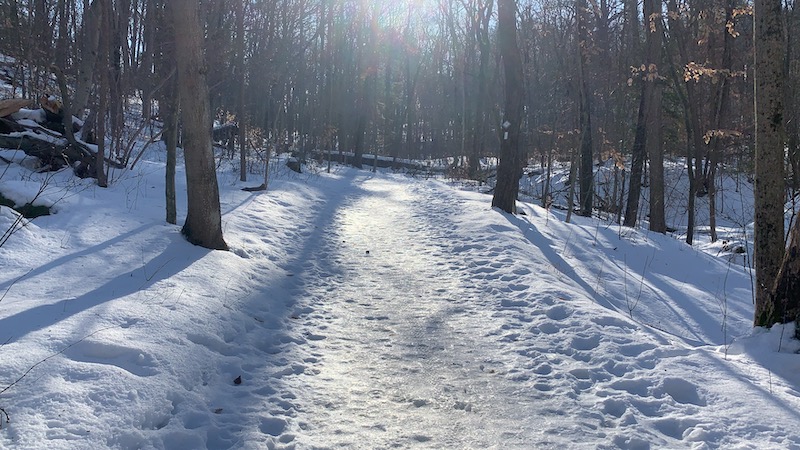 Dundas Valley is a favourite place to hike, especially in winter. The ground is snowy trail is magical.