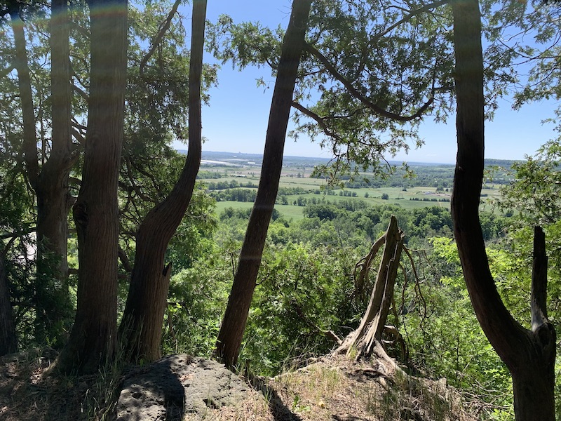 This trail offers interesting terrain along the top of the escarpment and great views from the quarry bridge and trail lookouts.