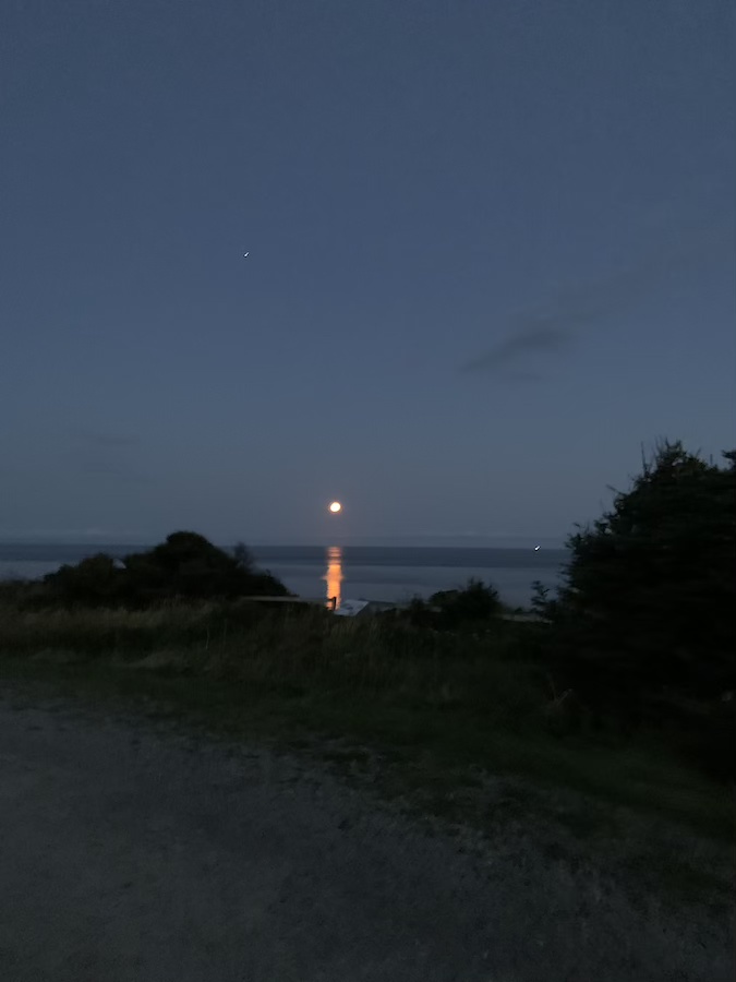 We awoke at 6am and were on the road around 7am. I watched the moon set beyond the horizon and wondered if that was the full moon or if the one that will rise over the tree tops was more full. Either way it was a beautiful reward for an early morning.
