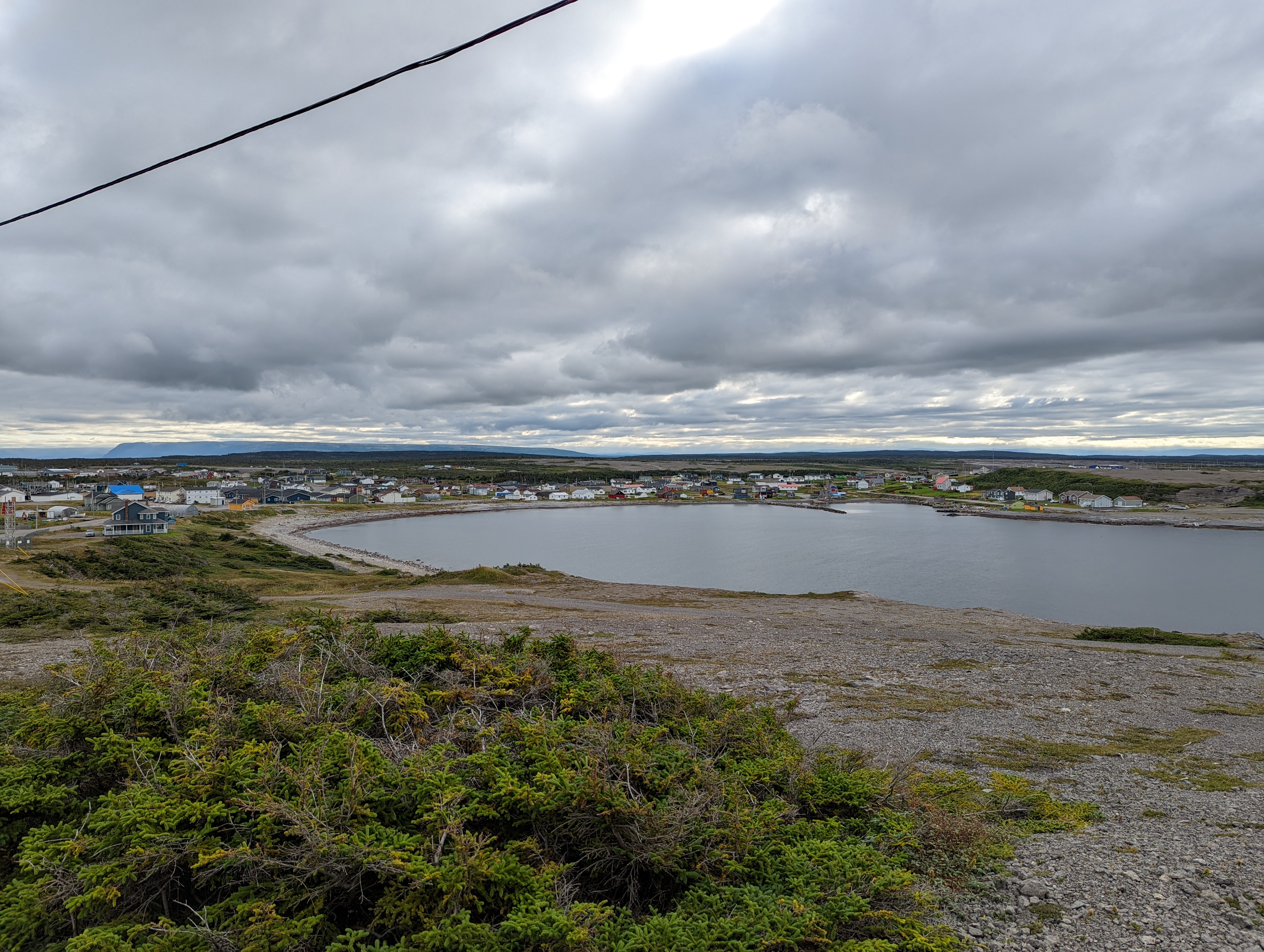 The drive after the park had some nice features and views. It was a nice day, but a little cloudier than the previous ones. This grey dullness seemed to add to the austerity of the scenery. Meanwhile, we were happy to have this over the storm called Earl that pounded Saint John’s.